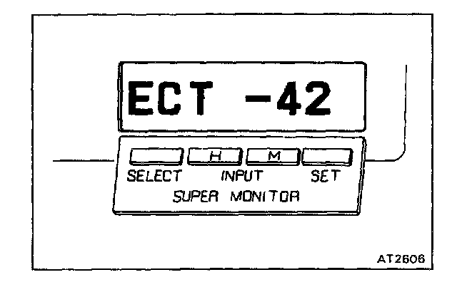 NOTE: Never depress the accelerator pedal while the Super Monitor Display Diagnostic Code is being displayed. Otherwise, it will cancel the display.