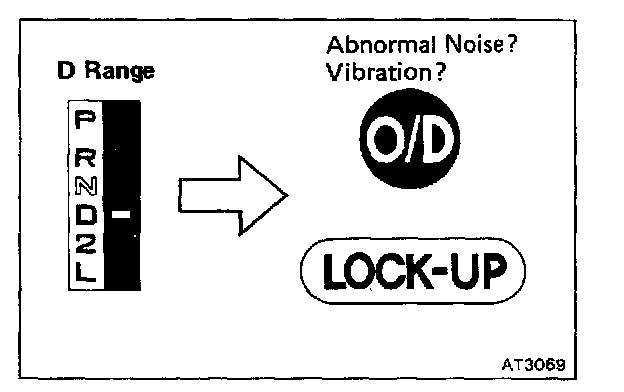 c. Run at the D range lock-up or O/D gear and check for abnormal noise and vibration.