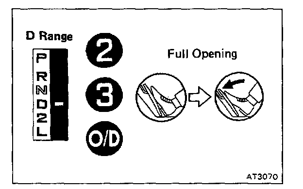 Shift into the D range and hold the accelerator pedal constant at the full throttle valve opening position.