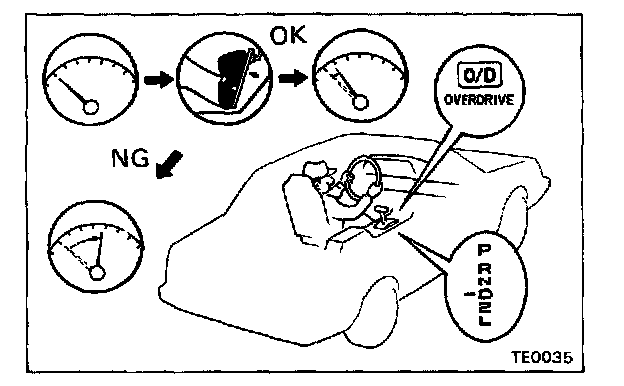 1. Drive in D range, O/D gear, at a steady speed (lock-up ON) of about 75 km/h (47 mph).