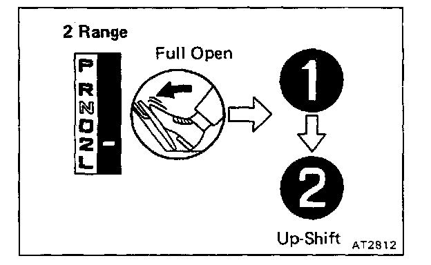 a. Check to see that the 1 -> 2 up-shift takes place and that the shift point conforms to it shown on the automatic shift schedule.