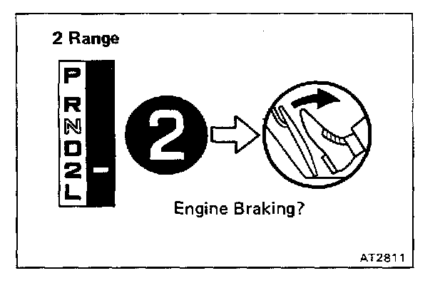b. While running in the 2 range and 2nd gear, release the accelerator pedal and check the engine braking effect.