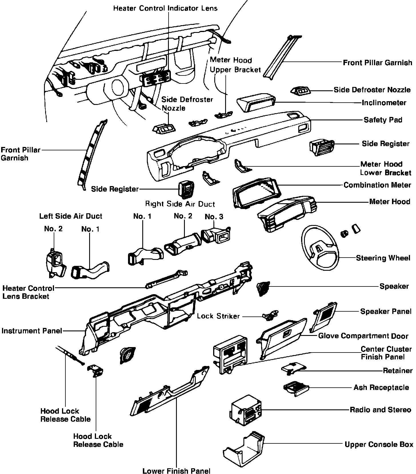 Fig. 23 Instrument panel & components. Tercel: