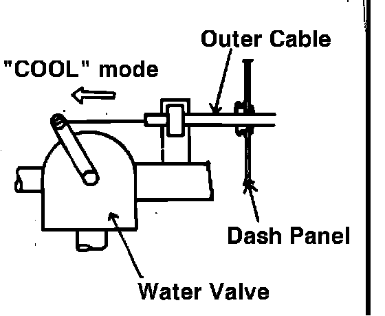 b. Locate and clamp the cable with the outer cable housing positioned slightly toward the "COOL" mode of the water valve assembly.
