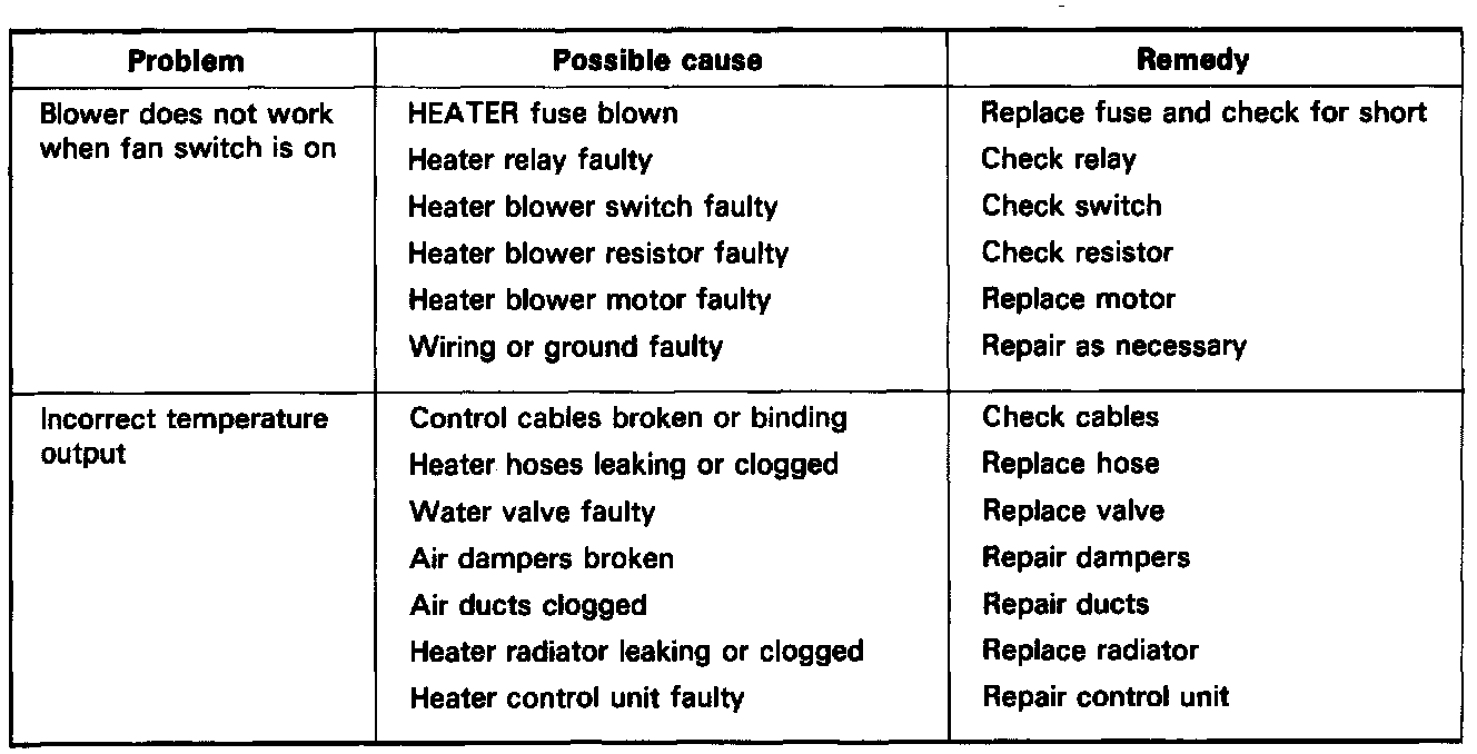 Heater Troubleshooting Chart: