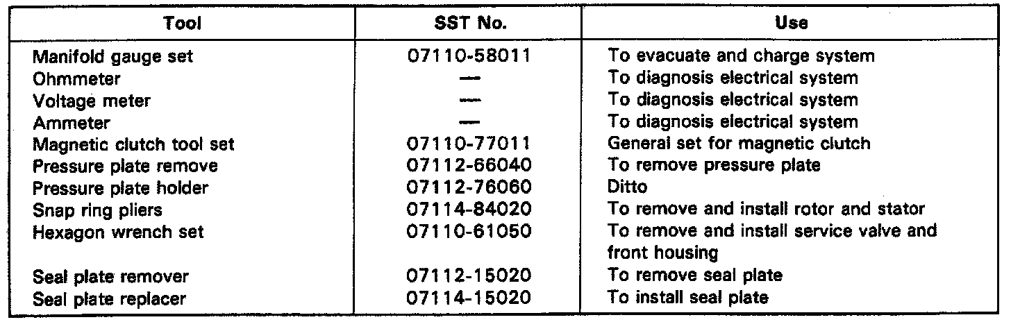 Special Tool Chart: