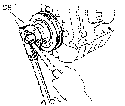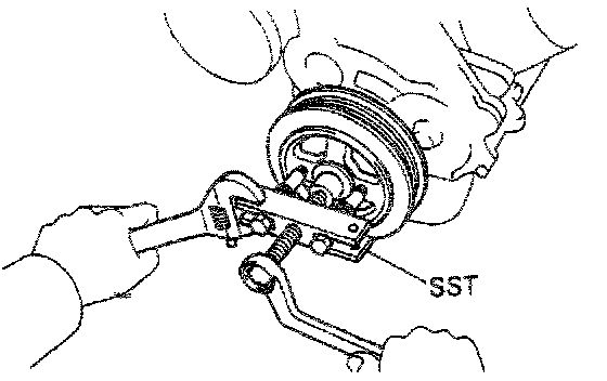 (c) Using SST 09213-31021, remove the pulley.