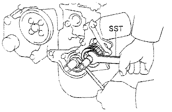 (b) Using SST 09123-14010 and 09330-00021, remove the pulley nut.