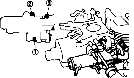 9. Install the float bowl, union nipple clamp, solenoid valve clamp, EGR vacuum modulator bracket and number plate with the four mounting screws.