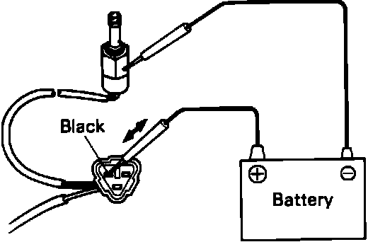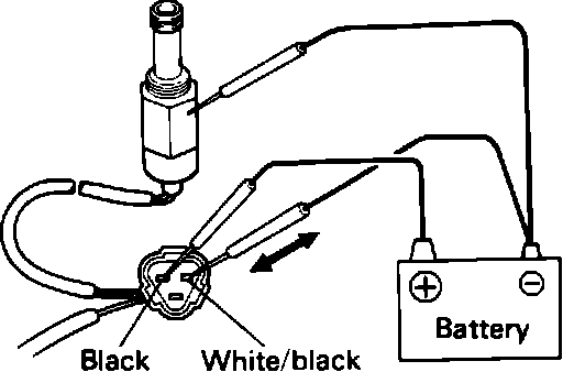 1. Disconnect the Fuel-cut Solenoid and unscrew it from the carburetor.2. Connect battery current to the terminals as shown.