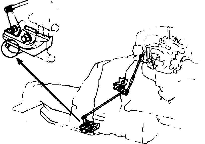 2. Loosen nut securing connecting rod to floorshift selector lever.