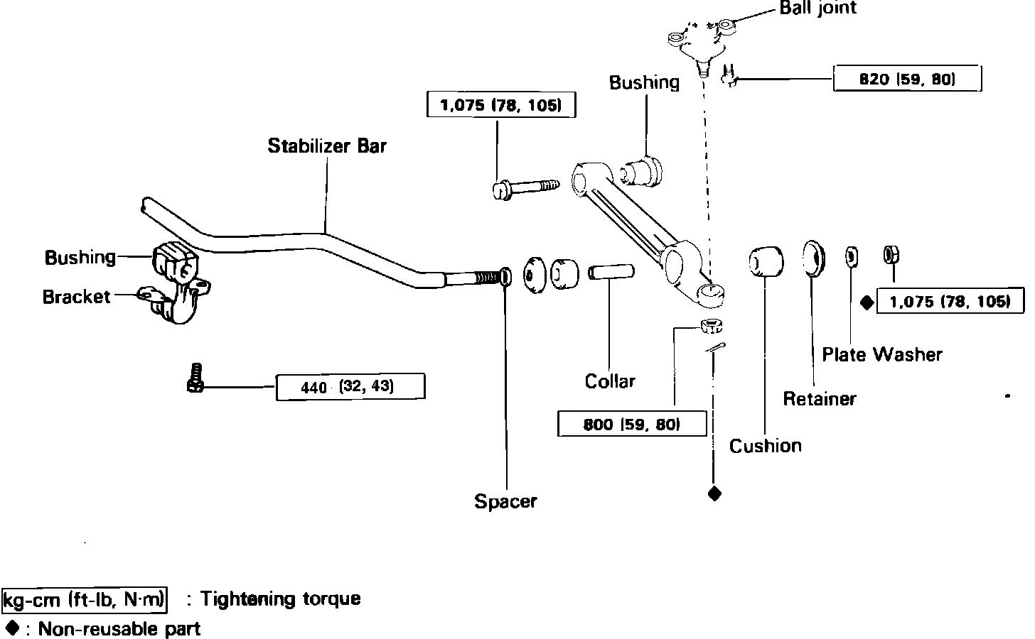 3. Remove stabilizer bar nut, retainer and cushion.