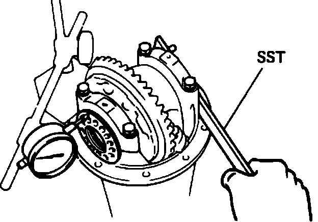 d. Screw in adjusting nuts at both sides with tool No. SST-09504-00010 until bearing cups are properly seated in carrier.