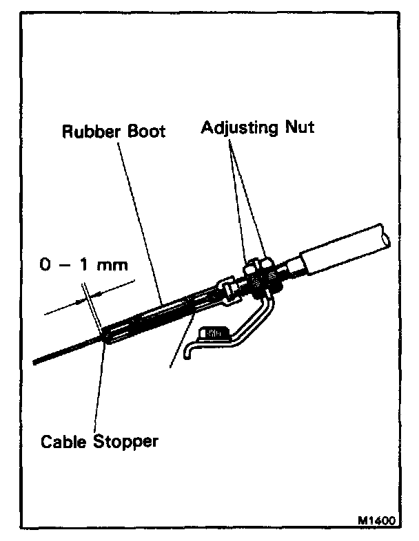 a. Adjust the cable housing so that distance between the end of the boot and the stopper on the cable is correct.