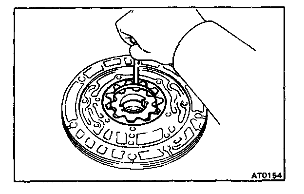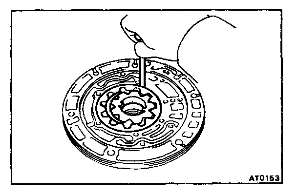 Push the driven gear to one side of the body. Using a feeler gauge, measure the clearance.