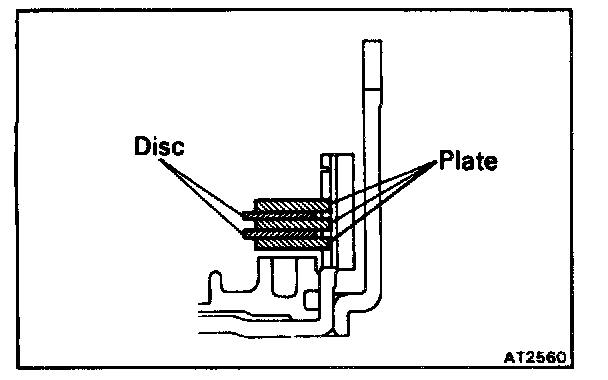 Check that the sliding surface of disc is not worn or burnt. If the disc is worn or burnt, replace all discs.