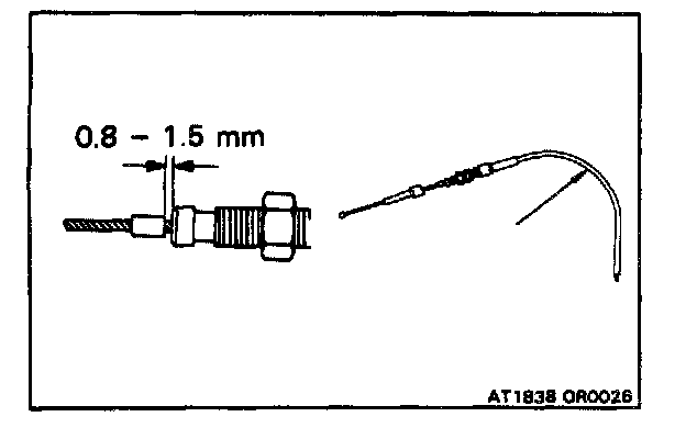 c. Stake the stopper, 0.8 - 1.5 mm (0.031 - 0.059 in.) from the end of outer cable.