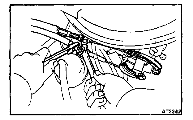 4. PULL THROTTLE CABLE OUT OF TRANSMISSION CASE