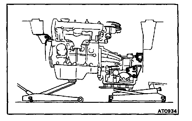 a. Hold the engine and transaxle with two jacks, or a chain block and jack.