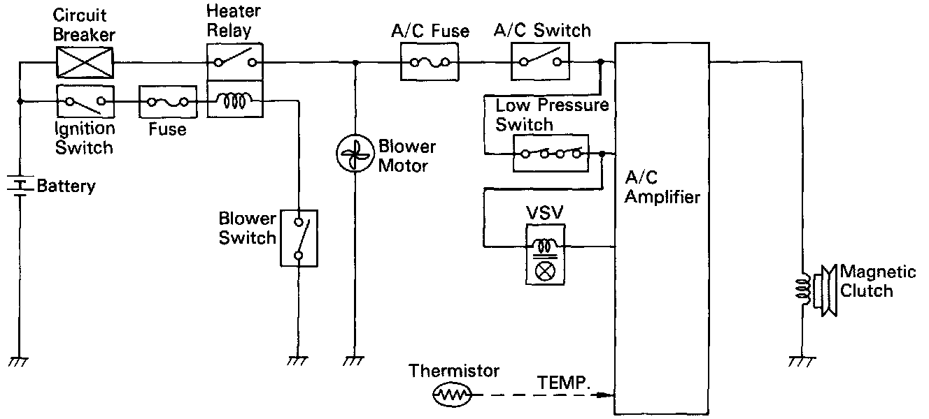 3. A/C Switch "ON"---> A/C Amplifier "ON" (A/C Amp. Main Power Supply)