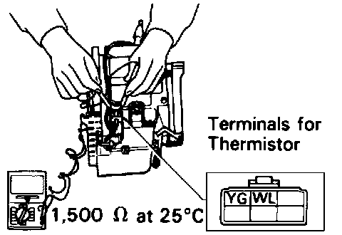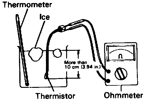 3. Check thermistor installed operation. Using an ohmmeter, measure the resistance between the terminals shown in the illustration.