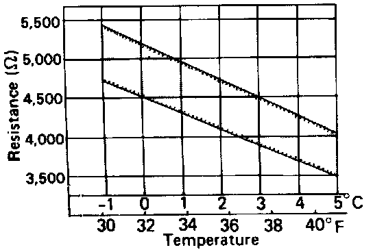 5. Compare the two readings on the chart. If the intersection is not between the two lines, replace the thermistor.
