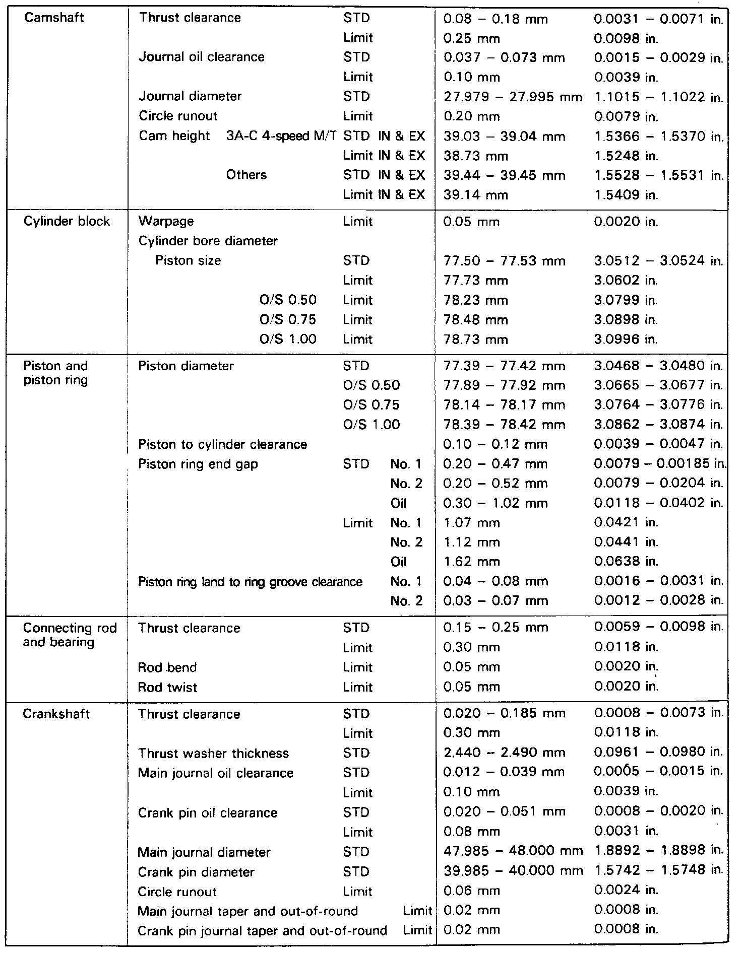 Tercel Wagon L4-1452cc 1.5L SOHC (3A-C)