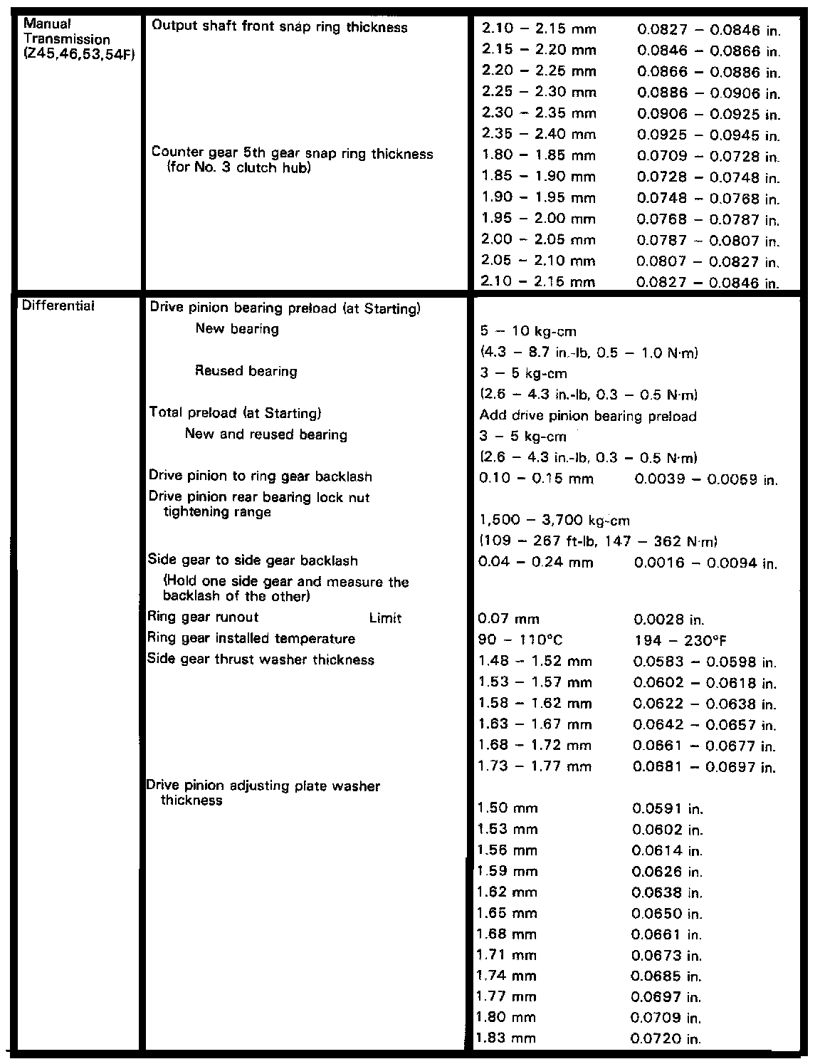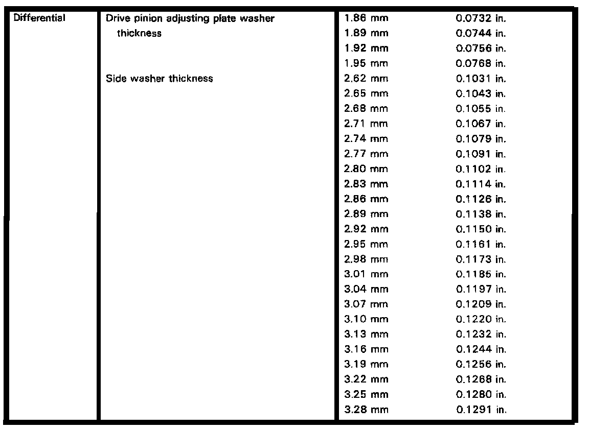 Z45/46 4-spd & Z53/54F 5-spd M/T, Differential Thickness: