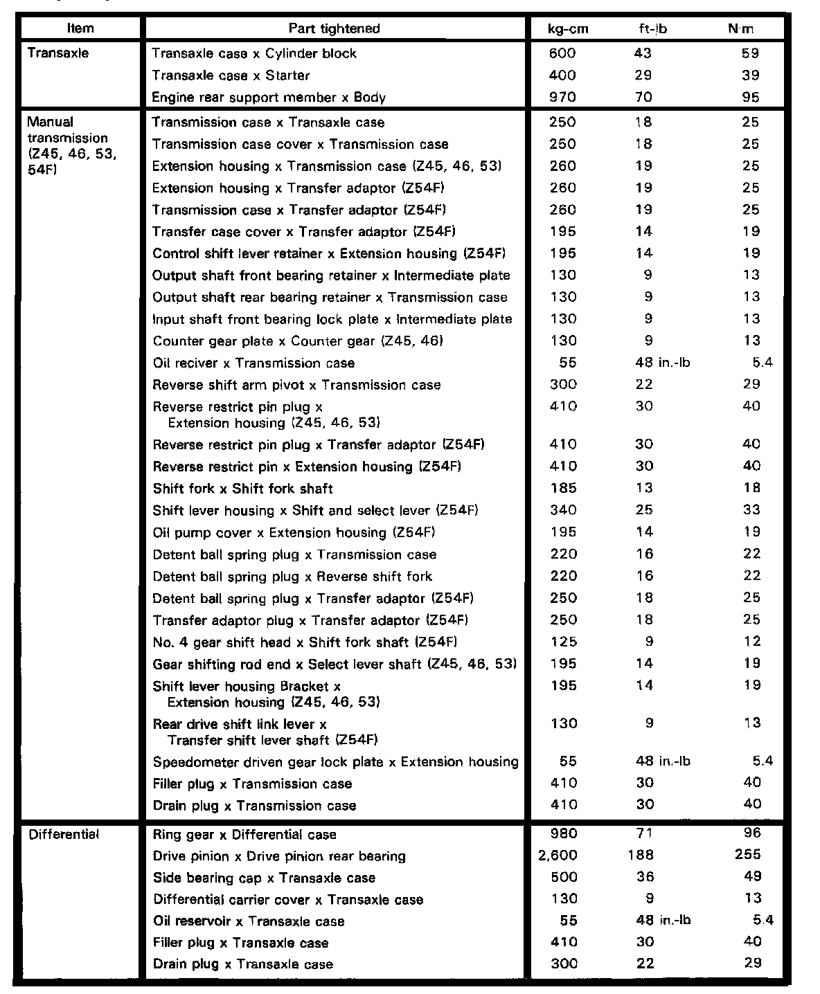 Z45/46 4-spd & Z53/54F 5-spd M/T, Transmission/Differential Torque: