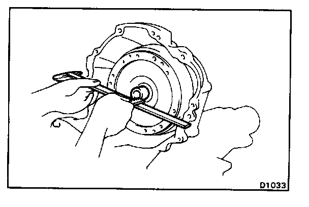 If runout exceeds 0.30 mm (0.011 8 in.), try to correct by reorienting the installation of the converter. If excessive runout cannot be corrected, replace the torque converter.