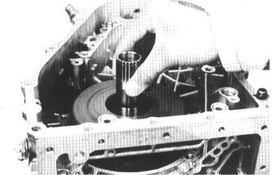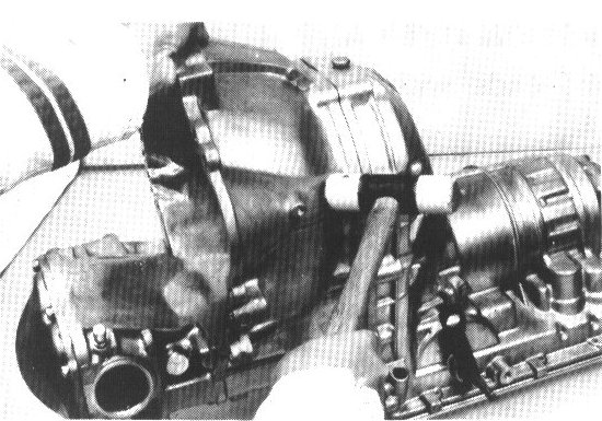 21. PLACE TRANSMISSION CASE ON WOODEN BLOCK AND REMOVE FRONT SUPPORT