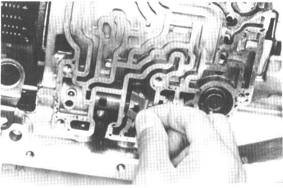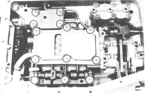 CAUTION: Do not turn the transmission over as this will contaminate the valve body with foreign materials in the bottom of the pan.