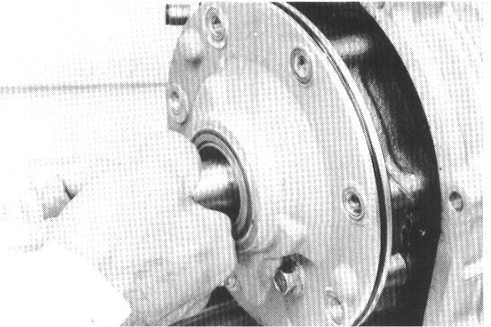 Using a long screwdriver, compress the snap ring and lift it above the groove with a wire hook.