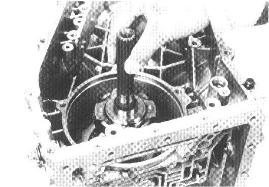 Grasp the shaft and pull out the front clutch assembly. Be careful of bearings and races on both sides of the assembly.