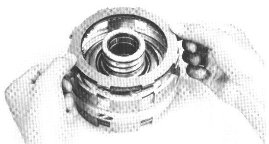 Press the No.1 brake piston into the center support with the cup side up, being careful not to damage the O-rings.