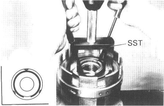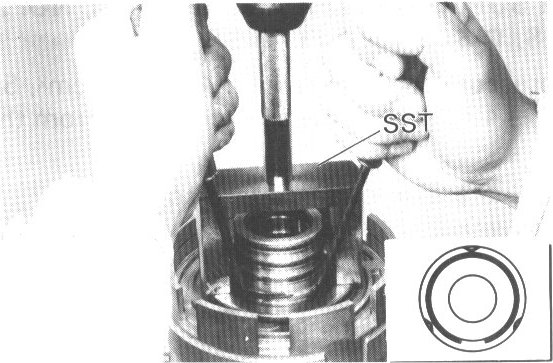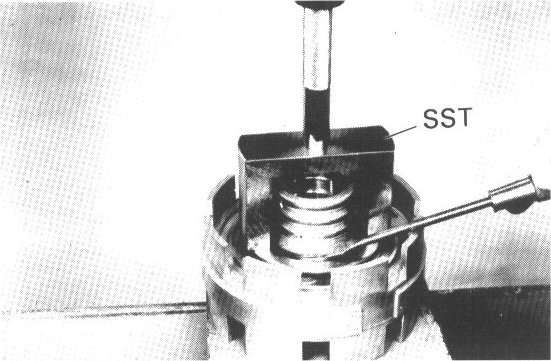 Place SST on spring retainer and compress the springs with a shop press.