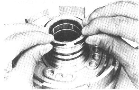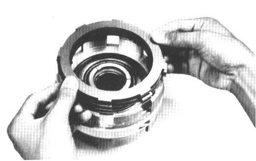 6. COMPRESS RETURN SPRINGS AND INSTALL SNAP RING IN GROOVE