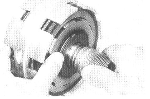 b. Mesh the brake hub with the discs, twisting and jiggling the hub as required.