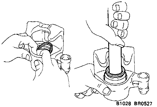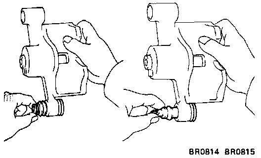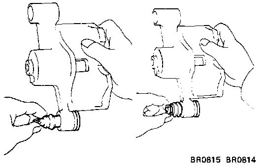 - Install the sliding bushing and dust boots into the brake cylinder.
