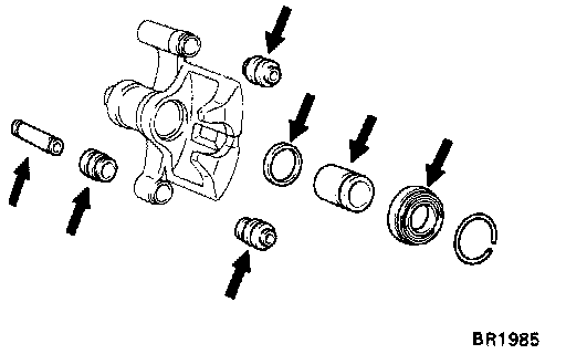 For additional information see Removal and Installation Notes. Service NotesFig. 1 Exploded View Of Rear Disc Brake Caliper Assembly. Supra & Celica: