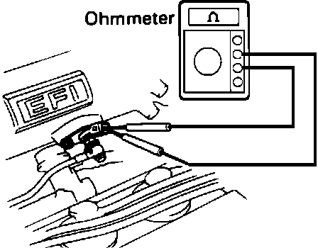 1. Disconnect the Cold Start Injector connector.2. Using an Ohmmeter, measure the resistance across the terminals.