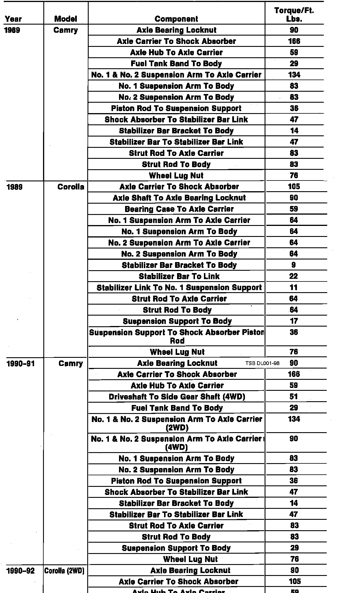 Camry Sedan 2WD L4-2.0L (3S-FE)