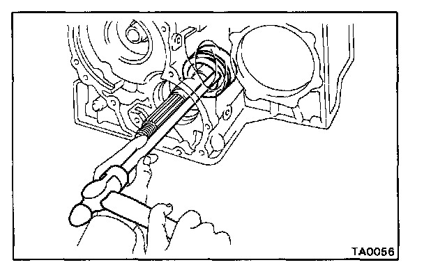 NOTE: Drive in the bearing cage until the surface of the bearing cage passes through the groove with the bore.