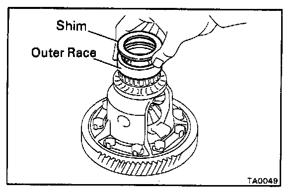 1. PLACE OUTER RACE AND SELECTED ADJUSTING SHIM ONTO RH SIDE BEARING