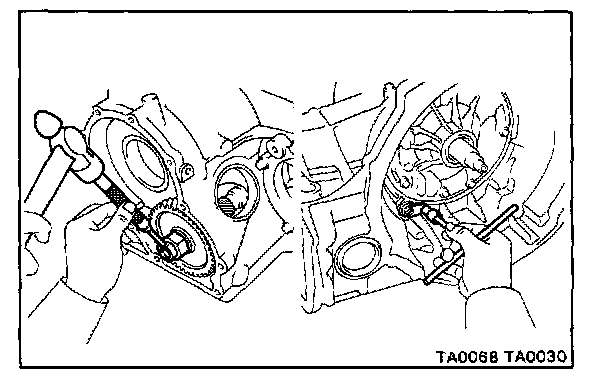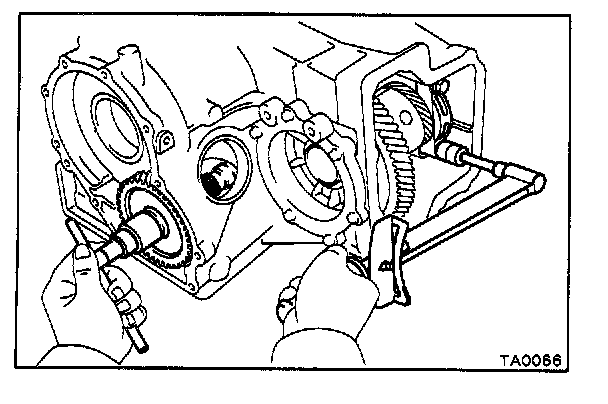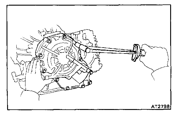 a. Place a bar at the drive pinion side and position the outer end of the bar against a vise or such.