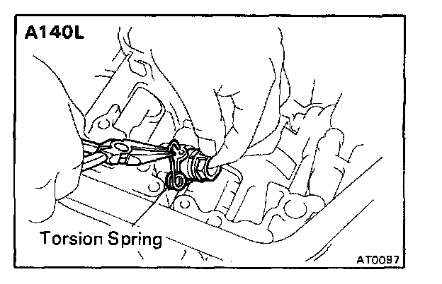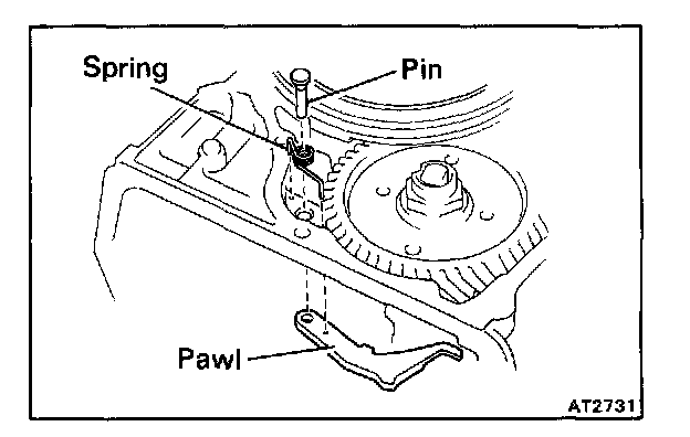 a. Place the parking lock pawl onto the case. Hook the spring ends to the case and pawl.