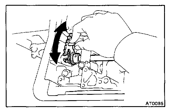 d. Install the manual valve lever shaft to the transmission case through the manual valve lever.