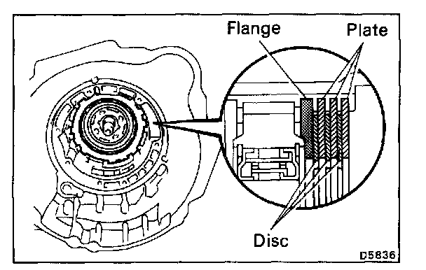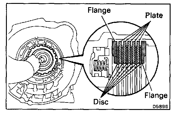 2. Before assembling new clutch discs, soak them in automatic transaxle fluid for at least two hours.