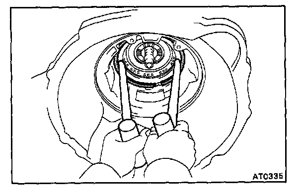 b. While compressing the piston return springs over the drum with hammer handles, install the snap ring into the groove.