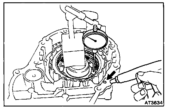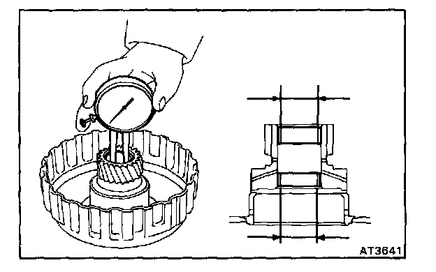 Using a dial indicator, measure the inside diameter of the two direct clutch bushings.